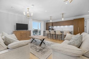 Brophy Estates is delighted to bring to the market No. 6 Low Rock Apts, an exceptional 2 bedroom fully furnished show apartment with unrivalled Sea Views – enjoy stunning views of the Irish Sea, with Lambay Island visible on the horizon. No. 6 combines modern design with the charm of a coastal setting. The open-plan interior and large windows maximize natural light and showcase the picturesque surroundings, triple aspect making it ideal for those who appreciate the beauty of seaside living while being just a short distance from the vibrant amenities of Malahide village. Fully Equipped Kitchen supplied by Alwood by Alfred Briggs, with worktops and backstops made from a luxurious combination of Corian and Quartz. The kitchen appliances include Neff oven, combo microwave, dishwasher, fridge freezer and hob (island hob is Bora). A Quooker boiling water tap adds an extra touch of convenience. The bathroom features high-quality sanitaryware from Roca, Tesi, and Grohe. No. 6 is equipped with an MVHR Mechanical Ventilation Heat Recovery system, ensuring optimal air quality by extracting air from the bathroom, ensuite, and kitchen while supplying fresh air to bedrooms and living areas. Dimplex Q-Rads electric radiators and a Dimplex air source heat pump for hot water, ensure efficient and reliable heating throughout the home. Enjoy the tranquillity of North County Dublin’s picturesque coastline right at your doorstep, overlooking the entrance to Malahide Beach, providing uninterrupted bay views. A private balcony provides a private space to enjoy unrivalled sea views.