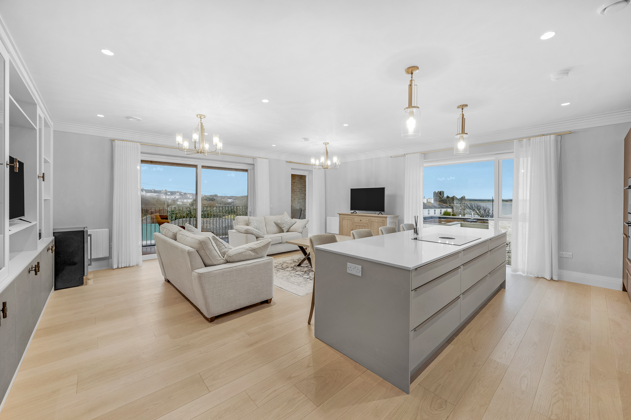 Brophy Estates is delighted to bring to the market No. 6 Low Rock Apts, an exceptional 2 bedroom fully furnished show apartment with unrivalled Sea Views – enjoy stunning views of the Irish Sea, with Lambay Island visible on the horizon. No. 6 combines modern design with the charm of a coastal setting. The open-plan interior and large windows maximize natural light and showcase the picturesque surroundings, triple aspect making it ideal for those who appreciate the beauty of seaside living while being just a short distance from the vibrant amenities of Malahide village. Fully Equipped Kitchen supplied by Alwood by Alfred Briggs, with worktops and backstops made from a luxurious combination of Corian and Quartz. The kitchen appliances include Neff oven, combo microwave, dishwasher, fridge freezer and hob (island hob is Bora). A Quooker boiling water tap adds an extra touch of convenience. The bathroom features high-quality sanitaryware from Roca, Tesi, and Grohe. No. 6 is equipped with an MVHR Mechanical Ventilation Heat Recovery system, ensuring optimal air quality by extracting air from the bathroom, ensuite, and kitchen while supplying fresh air to bedrooms and living areas. Dimplex Q-Rads electric radiators and a Dimplex air source heat pump for hot water, ensure efficient and reliable heating throughout the home. Enjoy the tranquillity of North County Dublin’s picturesque coastline right at your doorstep, overlooking the entrance to Malahide Beach, providing uninterrupted bay views. A private balcony provides a private space to enjoy unrivalled sea views.